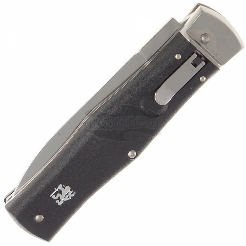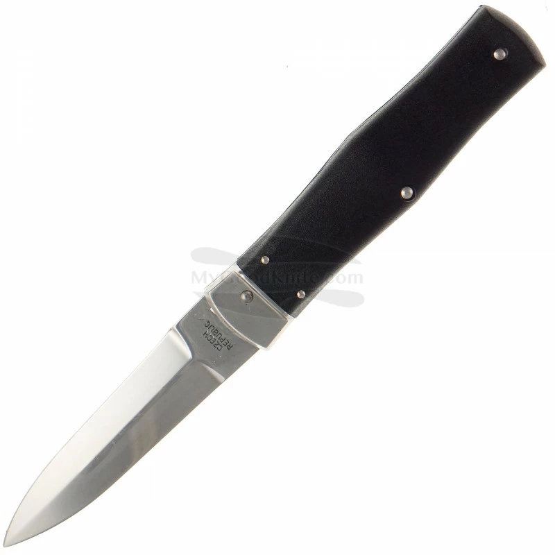Mikov Predator Classical 241-NH-1/KP/black 122119 is suitable for use in all conditions. The spear point blade with is made of high-quality stainless steel 420 with a hardness 53-55HRc. The handle is made of with scratch resistant ABS plastic in black. Profiled shape provides a comfortable, secure grip even with wet hands. Headstock finished with a bolster made of stainless steel. The case is made of high quality natural leather in brown colour with embossed producer’s logo. The leather scabbard has an attachment to the belt or equipment allowing to carry the knife in an upright position.