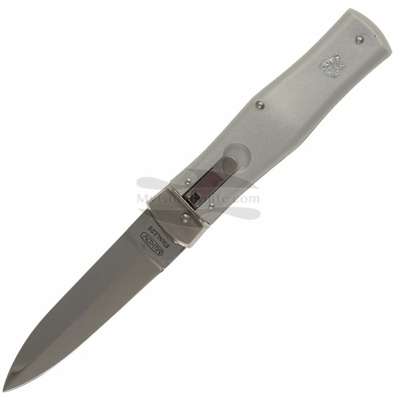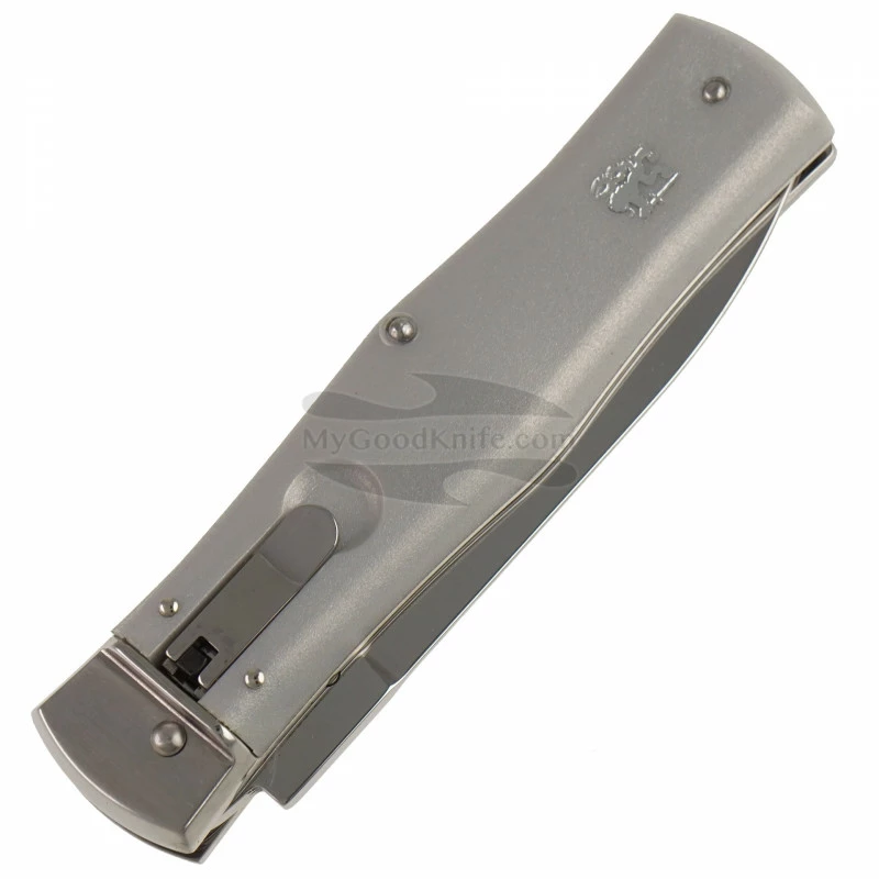 Automatic knife Mikov Predator Classical 241-NH-1/KP/Grey V1707508 has an interesting appearance that everyone will like. The spear point blade with is made of high-quality stainless steel 420 with a hardness 53-55HRc. The handle is made of with scratch resistant ABS plastic in grey. Profiled shape provides a comfortable, secure grip even with wet hands. Headstock finished with a bolster made of stainless steel. The case is made of high quality natural leather in brown colour with embossed producer’s logo. The leather scabbard has an attachment to the belt or equipment allowing to carry the knife in an upright position.