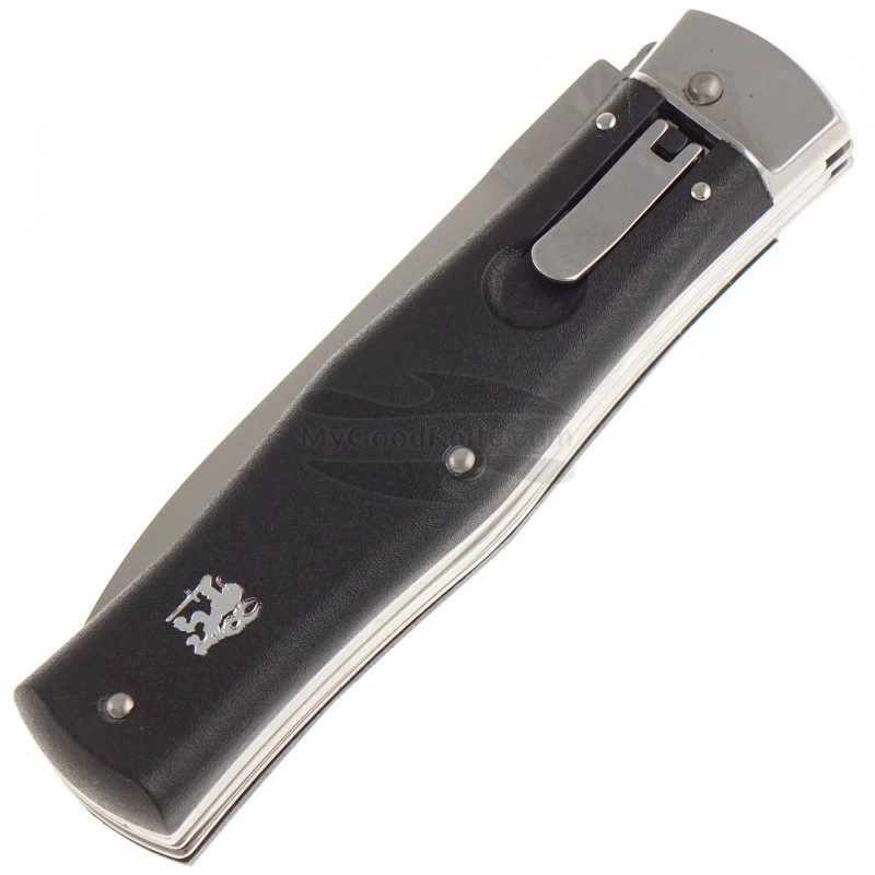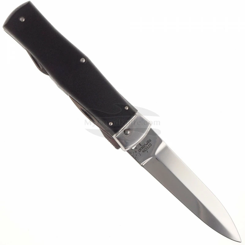 Mikov Predator Classical 241-NH-3/KP 129775 with bottle and can opener. The spear point blade with is made of high-quality stainless steel 420 with a hardness 53-55HRc. The handle is made of with scratch resistant ABS plastic in black. Profiled shape provides a comfortable, secure grip even with wet hands. Headstock finished with a bolster made of stainless steel. The case is made of high quality natural leather in brown colour with embossed producer’s logo. The leather scabbard has an attachment to the belt or equipment allowing to carry the knife in an upright position.